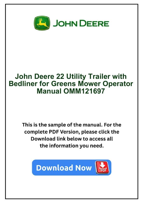 John Deere 22 Utility Trailer with Bedliner for Greens Mower Operator Manual OMM121697