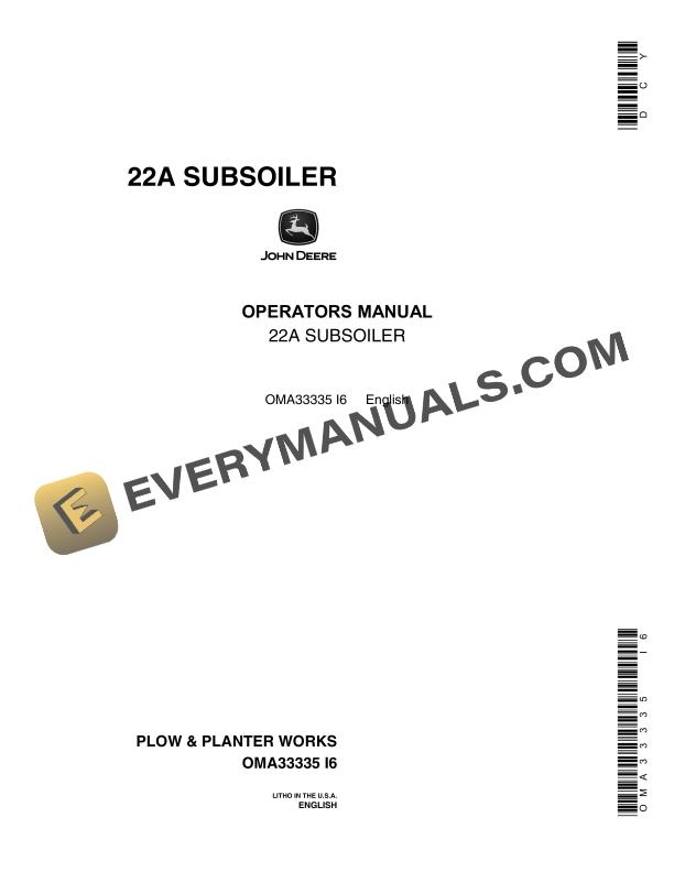 John Deere 22A SUBSOILER Operator Manual OMA33335