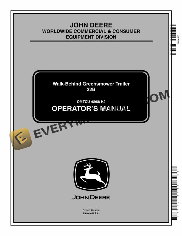 John Deere 22B Walk-Behind Greensmower Trailer Operator Manual OMTCU16968