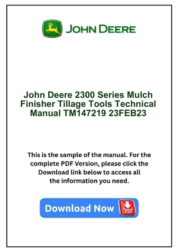John Deere 2300 Series Mulch Finisher Tillage Tools Technical Manual TM147219 23FEB23 by manualgroup - Issuu