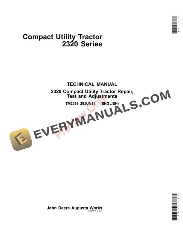 John Deere 2320 Compact Utility Tractor Technical Manual TM2388 29JUN11