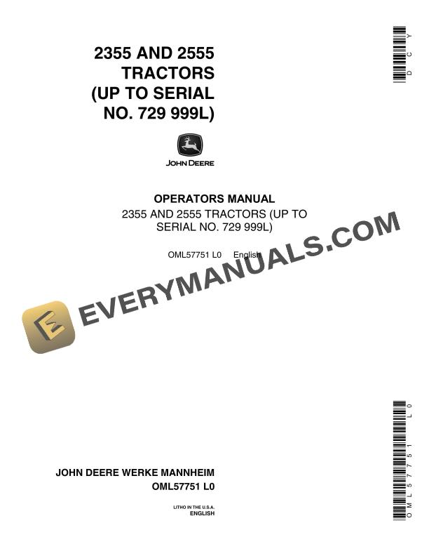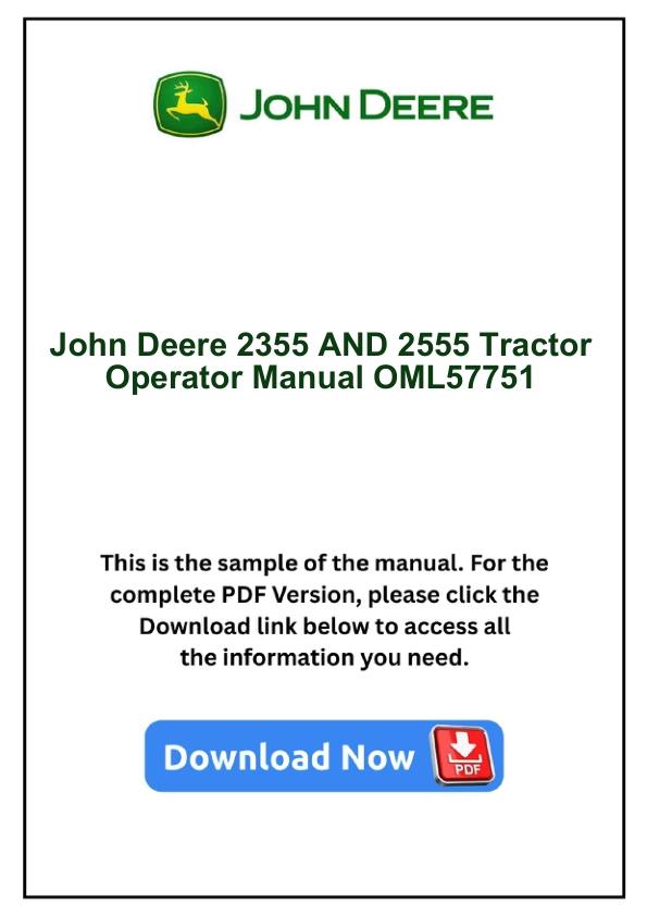 John Deere 2355 AND 2555 Tractor Operator Manual OML57751