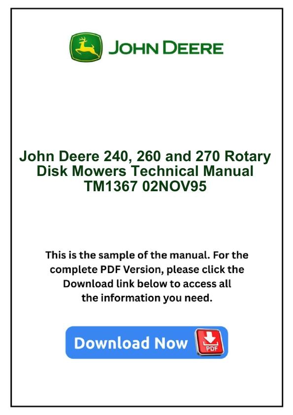 John Deere 240, 260 and 270 Rotary Disk Mowers Technical Manual TM1367 02NOV95