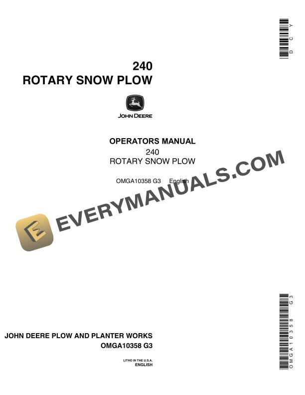 John Deere 240 ROTARY SNOW PLOW Operator Manual OMGA10358