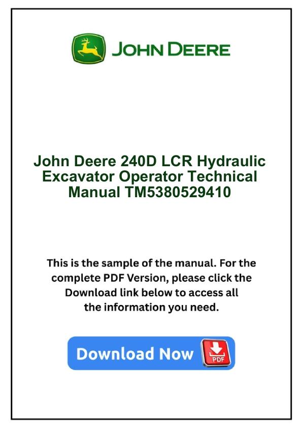 John Deere 240D LCR Hydraulic Excavator Operator Technical Manual TM5380529410