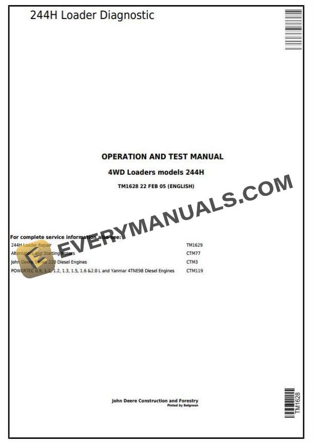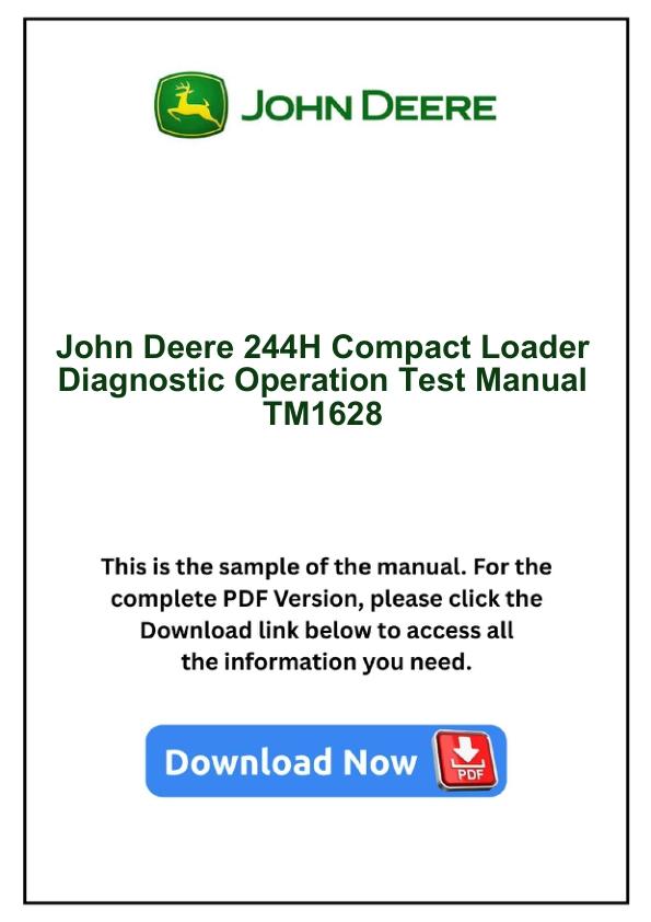 John Deere 244H Compact Loader Diagnostic Operation Test Manual TM1628