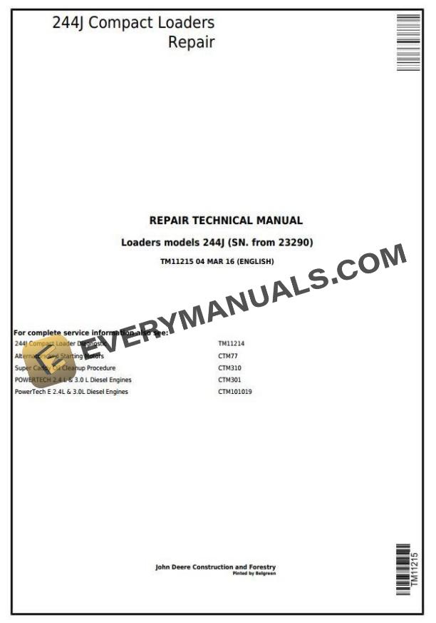 John Deere 244J Compact Loader Repair Technical Manual TM11215