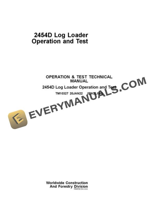 John Deere 2454D Log Loader Test Manual TM10327 by manualgroup - Issuu
