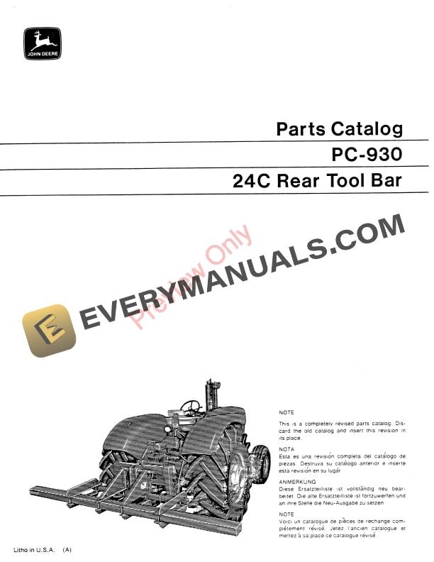John Deere 24C Rear Toolbar Parts Catalog PC930 01MAY70