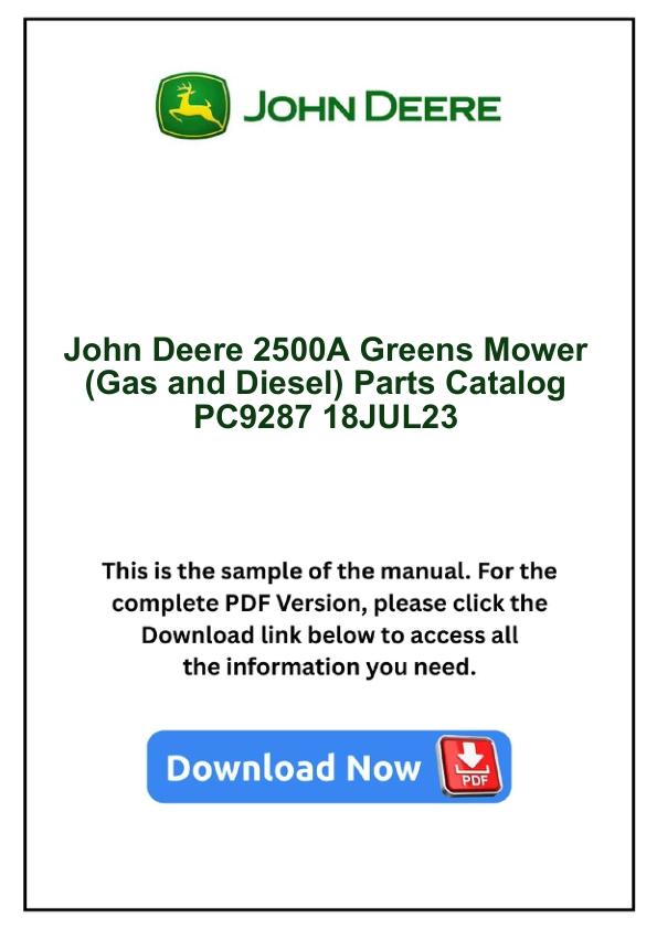 John Deere 2500A Greens Mower (Gas and Diesel) Parts Catalog PC9287 18JUL23 by manualgroup - Issuu