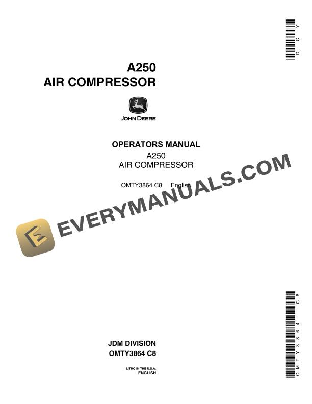 John Deere 250 Air Compressor Operator Manual OMTY3864