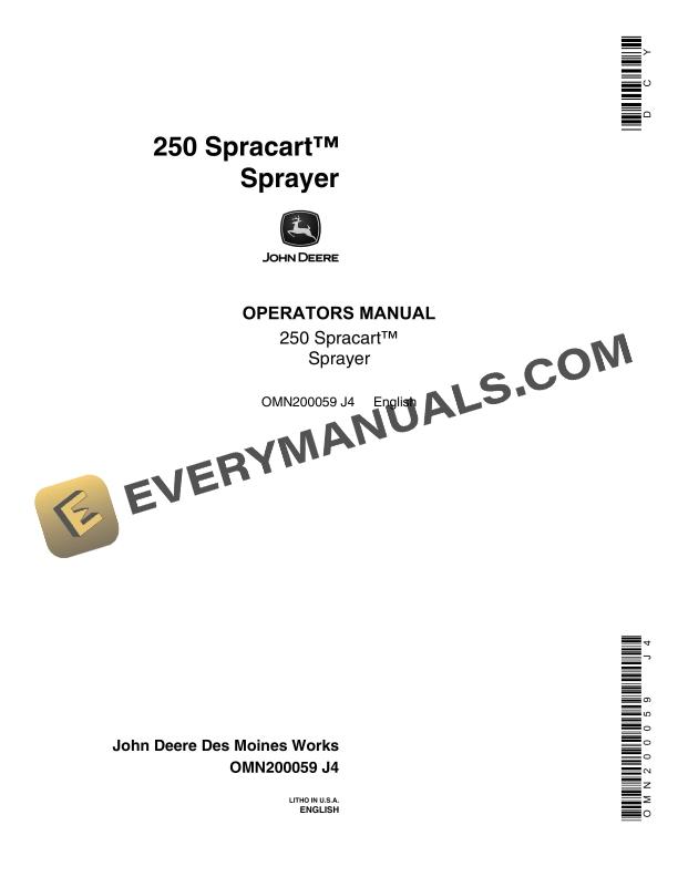 John Deere 250 Spracart Sprayer Operator Manual OMN200059