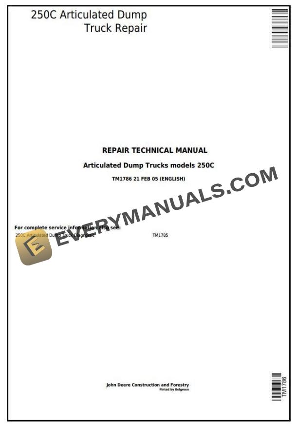 John Deere 250C Articulated Dump Truck Repair Technical Manual TM1786 PDF