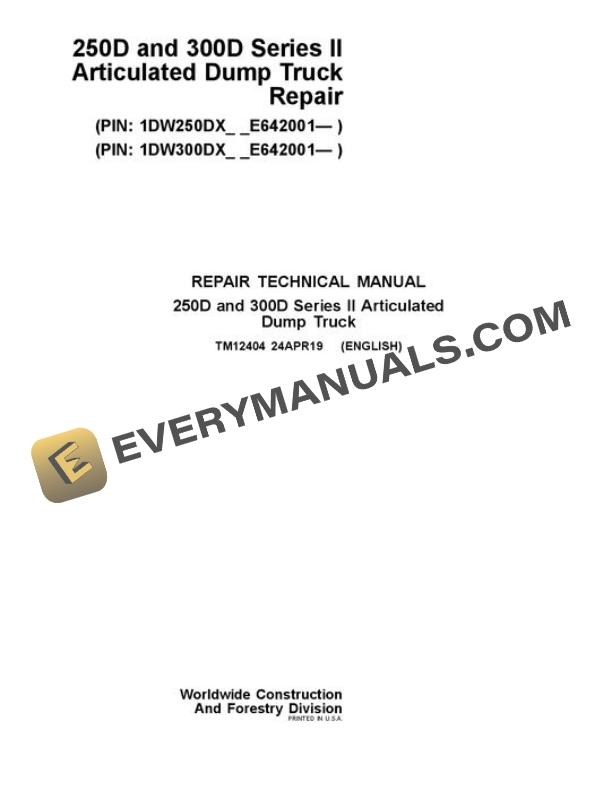 John Deere 250D 300D Series II Articulated Dump Truck Repair Manual TM12404