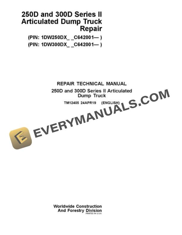 John Deere 250D 300D Series II Articulated Dump Truck Repair Manual TM12405