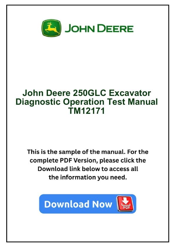 John Deere 250GLC Excavator Diagnostic Operation Test Manual TM12171 by manualgroup - Issuu