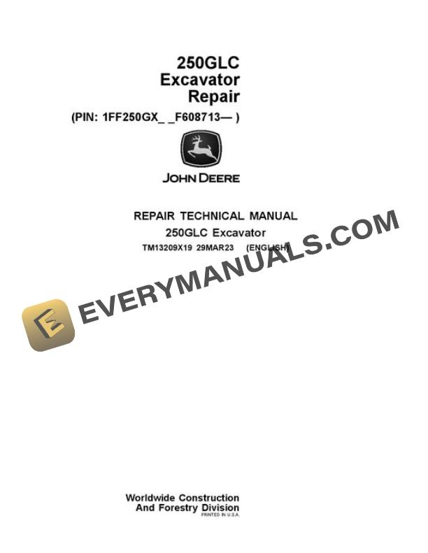 John Deere 250GLC Excavator Repair Manual TM13209X19