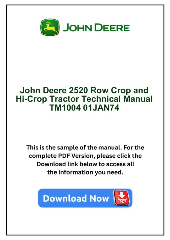 John Deere 2520 Row Crop and Hi-Crop Tractor Technical Manual TM1004 01JAN74 by manualgroup - Issuu