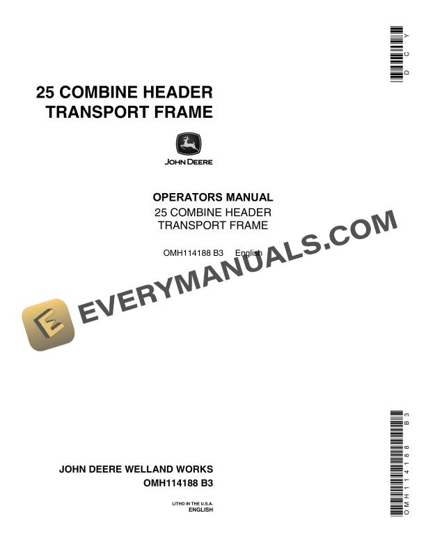 John Deere 25 COMBINE HEADER TRANSPORT FRAME Operator Manual OMH114188 by manualgroup - Issuu