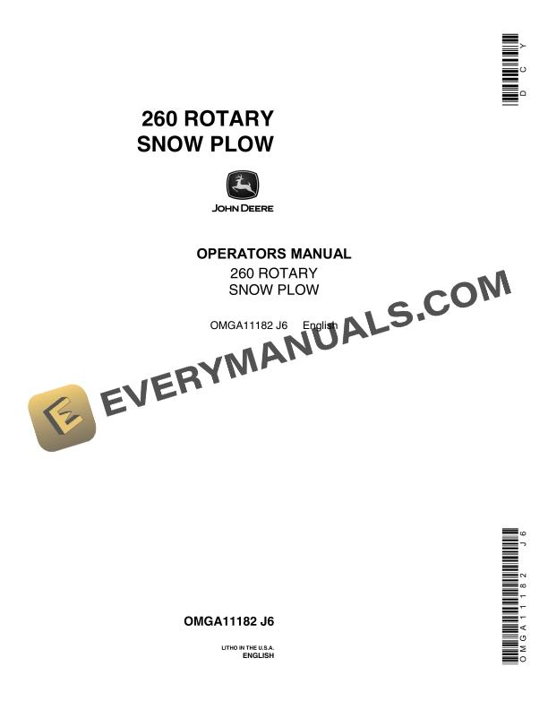 John Deere 260 ROTARY SNOW PLOW Operator Manual OMGA11182