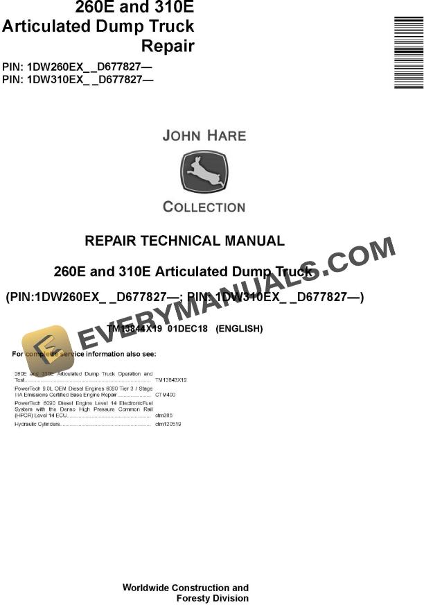 John Deere 260E 310E Articulated Dump Truck Repair Technical Manual TM13844X19 by manualgroup - Issuu