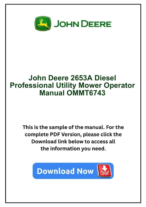 John Deere 2653A Diesel Professional Utility Mower Operator Manual OMMT6743