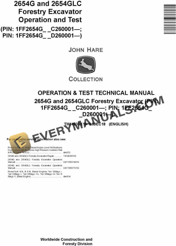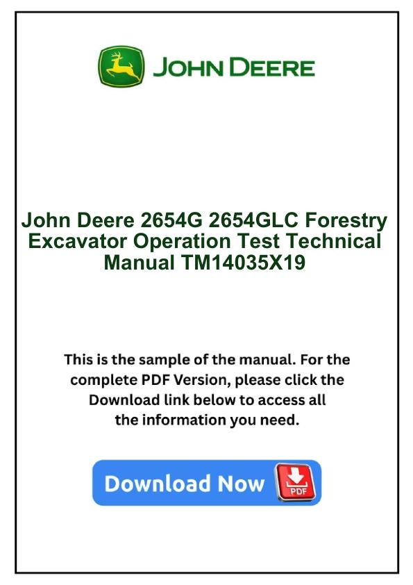 John Deere 2654G 2654GLC Forestry Excavator Operation Test Technical Manual TM14035X19
