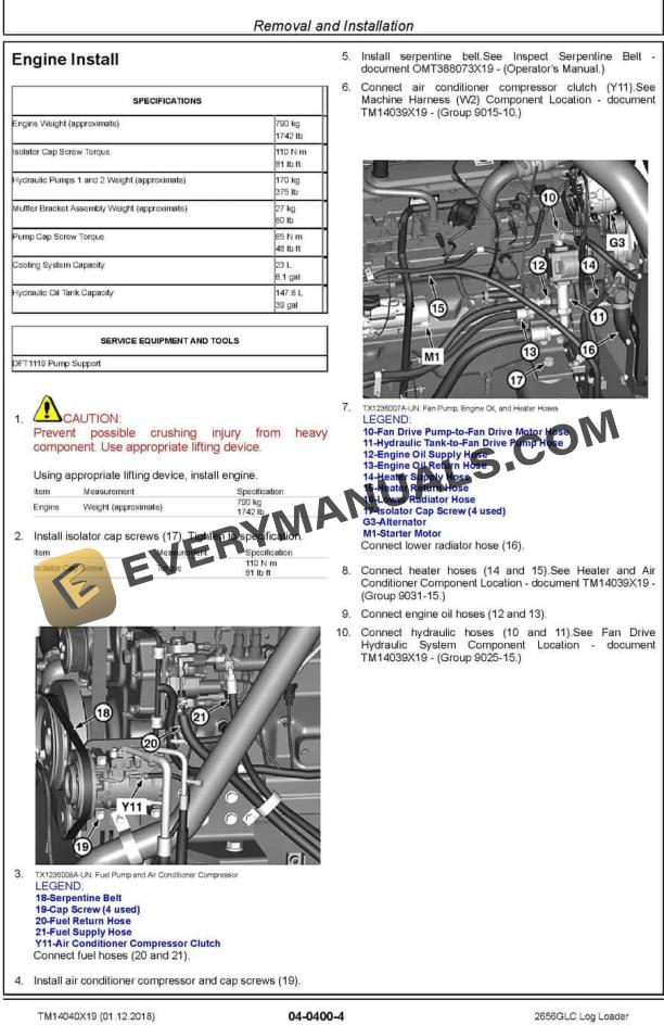 John Deere 2656GLC Log Loader Repair Technical Manual TM14040X19