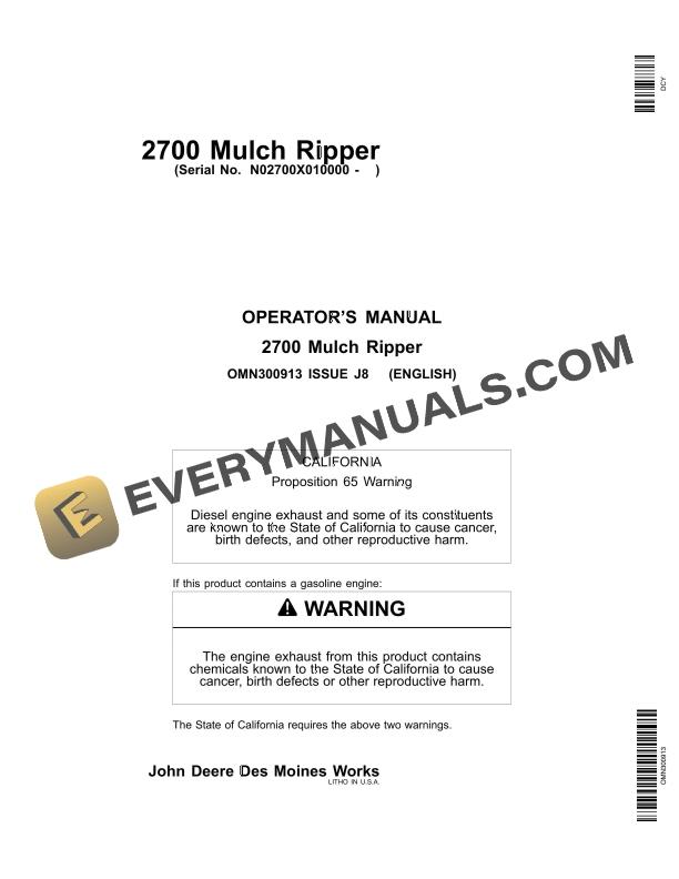 John Deere 2700 Mulch Ripper Operator Manual OMN300913