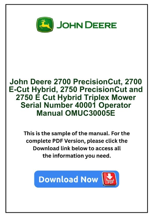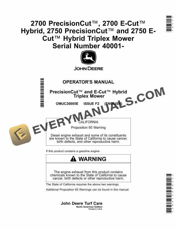 John Deere 2700 PrecisionCut, 2700 E-Cut Hybrid, 2750 PrecisionCut and 2750 E Cut Hybrid Triplex Mow