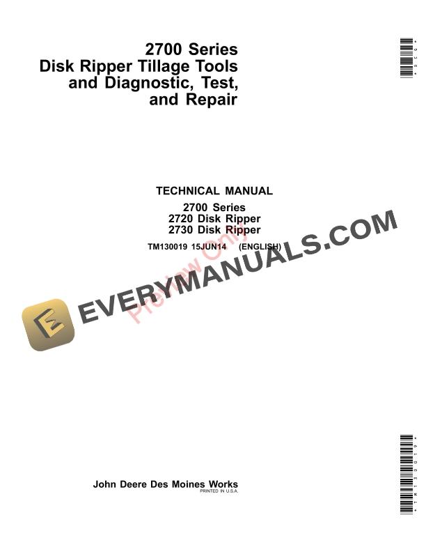 John Deere 2700 Series 2720, 2730 Disk Ripper Tillage Technical Manual TM130019 20MAR15