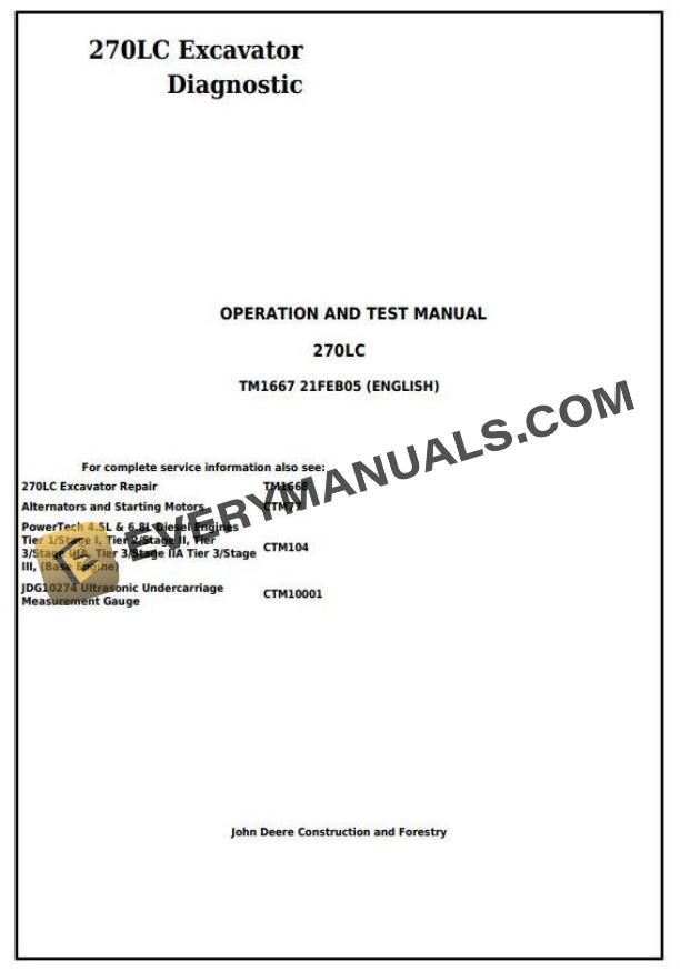 John Deere 270LC Excavator Diagnostic Operation Test Manual TM1667
