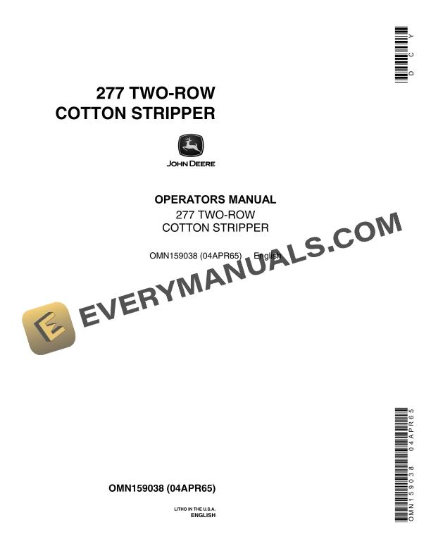 John Deere 277 Two Row Cotton Sripper Operator Manual OMN159038