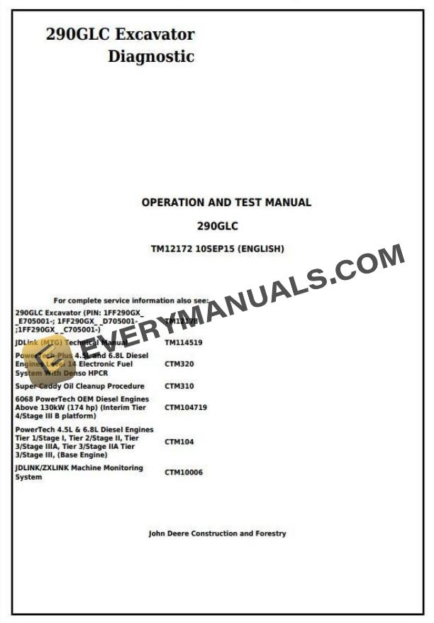 John Deere 290GLC Excavator Diagnostic Operation Test Manual TM12172