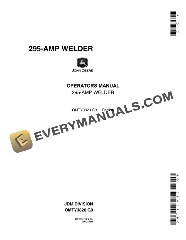 John Deere 295-AMP WELDER Operator Manual OMTY3820