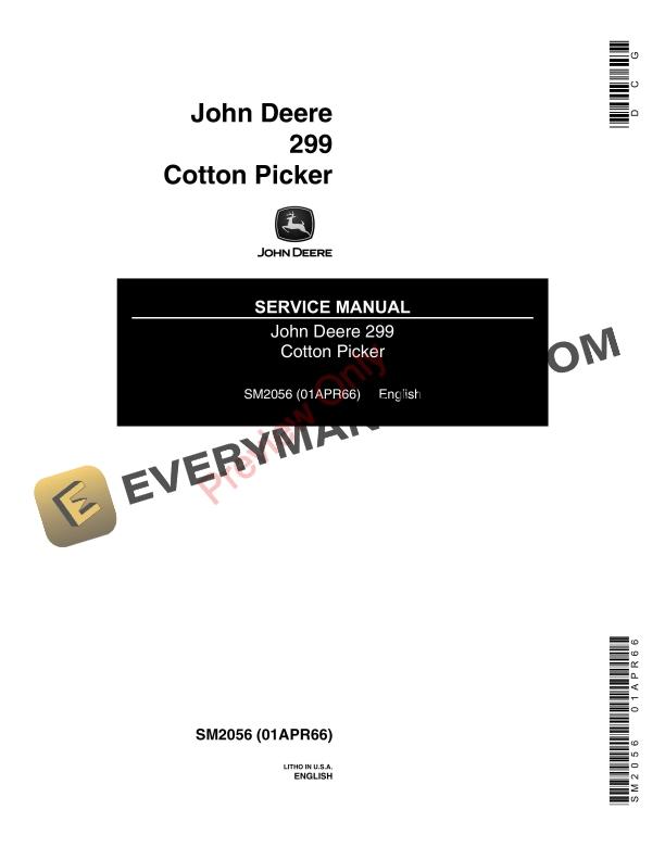John Deere 299 Cotton Picker Service Manual SM2056 01APR66