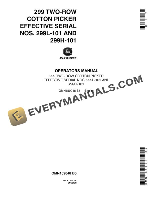 John Deere 299 TWO-ROW COTTON PICKER Operator Manual OMN159048