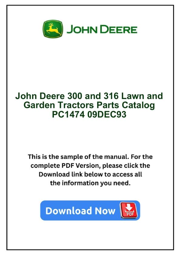 John Deere 300 and 316 Lawn and Garden Tractors Parts Catalog PC1474 09DEC93