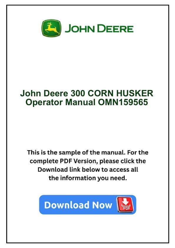 John Deere 300 CORN HUSKER Operator Manual OMN159565