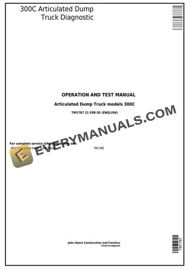 John Deere 300C Articulated Dump Truck Diagnostic Operation Test Manual TM1787