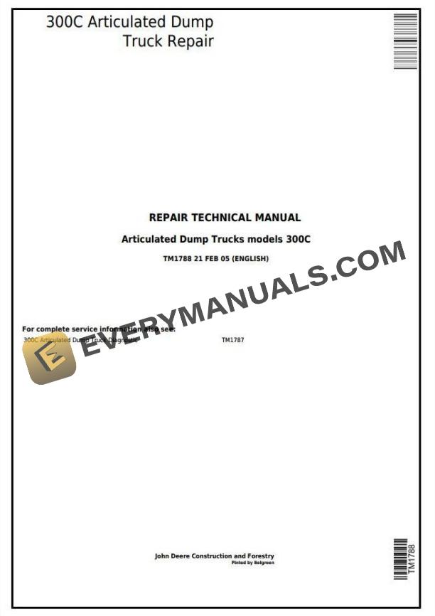 John Deere 300C Articulated Dump Truck Repair Technical Manual TM1788