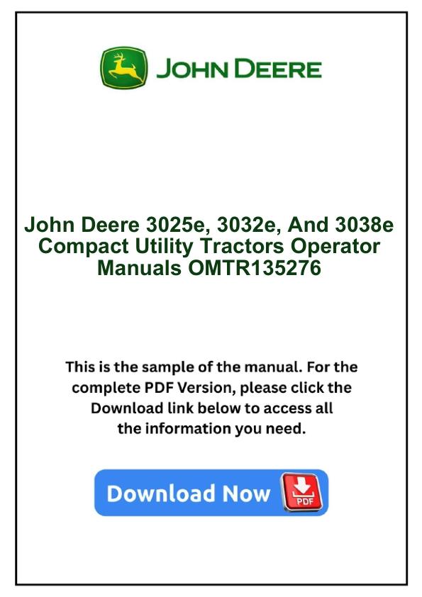 John Deere 3025e, 3032e, And 3038e Compact Utility Tractors Operator Manuals OMTR135276