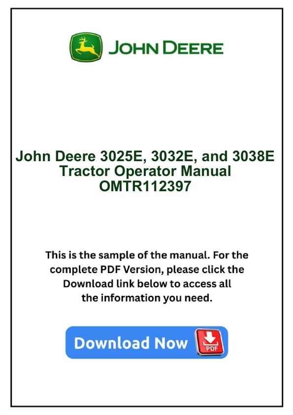 John Deere 3025E, 3032E, and 3038E Tractor Operator Manual OMTR112397