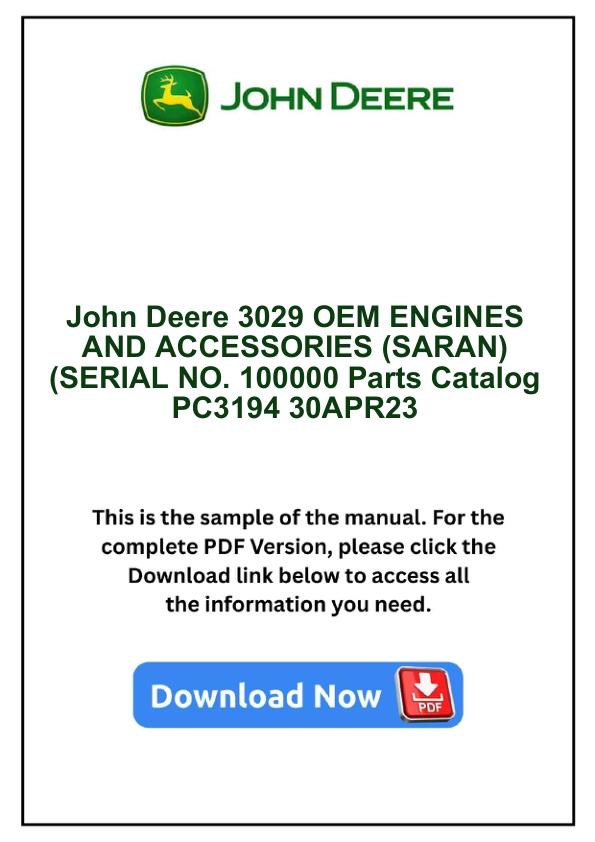 John Deere 3029 OEM ENGINES AND ACCESSORIES (SARAN) (SERIAL NO. 100000 Parts Catalog PC3194 30APR23