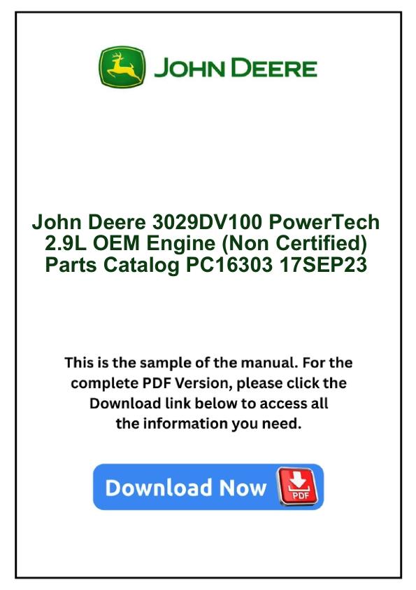 John Deere 3029DV100 PowerTech 2.9L OEM Engine (Non Certified) Parts Catalog PC16303 17SEP23 by manualgroup - Issuu