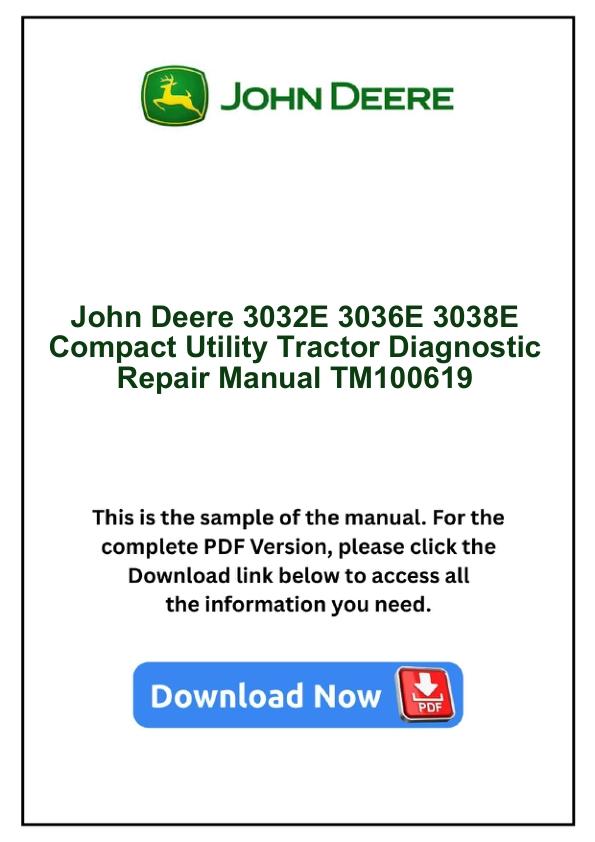 John Deere 3032E 3036E 3038E Compact Utility Tractor Diagnostic Repair Manual TM100619