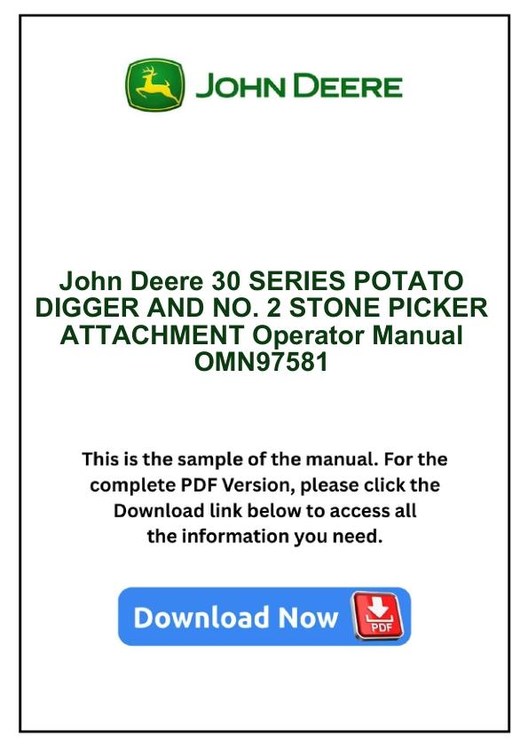 John Deere 30 SERIES POTATO DIGGER AND NO. 2 STONE PICKER ATTACHMENT Operator Manual OMN97581