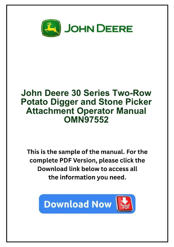 John Deere 30 Series Two-Row Potato Digger and Stone Picker Attachment Operator Manual OMN97552