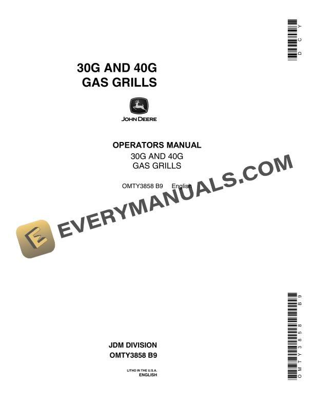 John Deere 30G AND 40G GAS GRILL Operator Manual OMTY3858