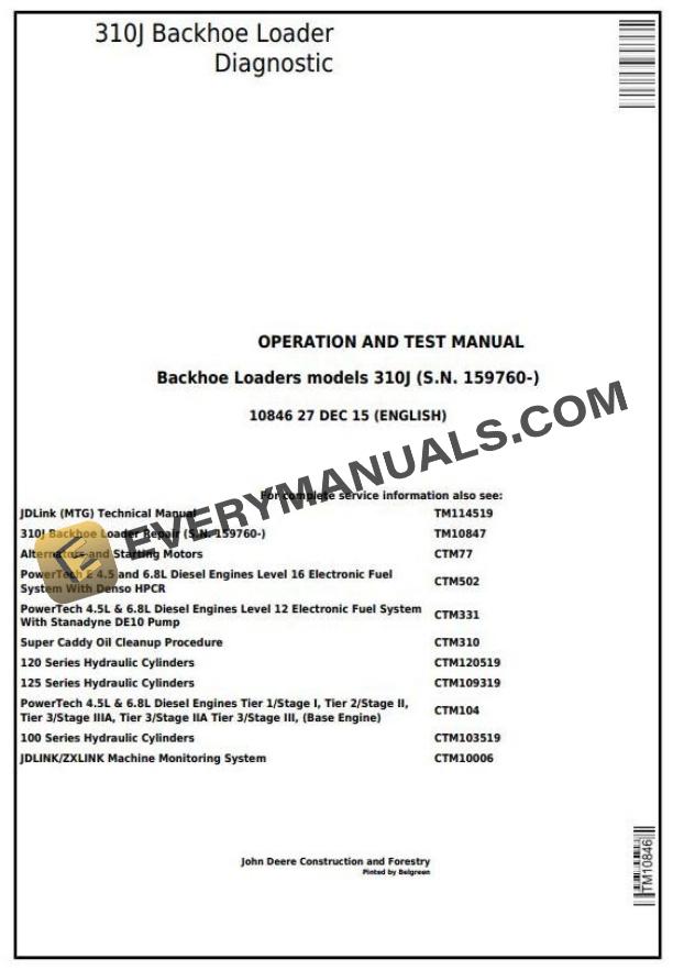 John Deere 310J Backhoe Loader Diagnostic Operation Test Manual TM10846